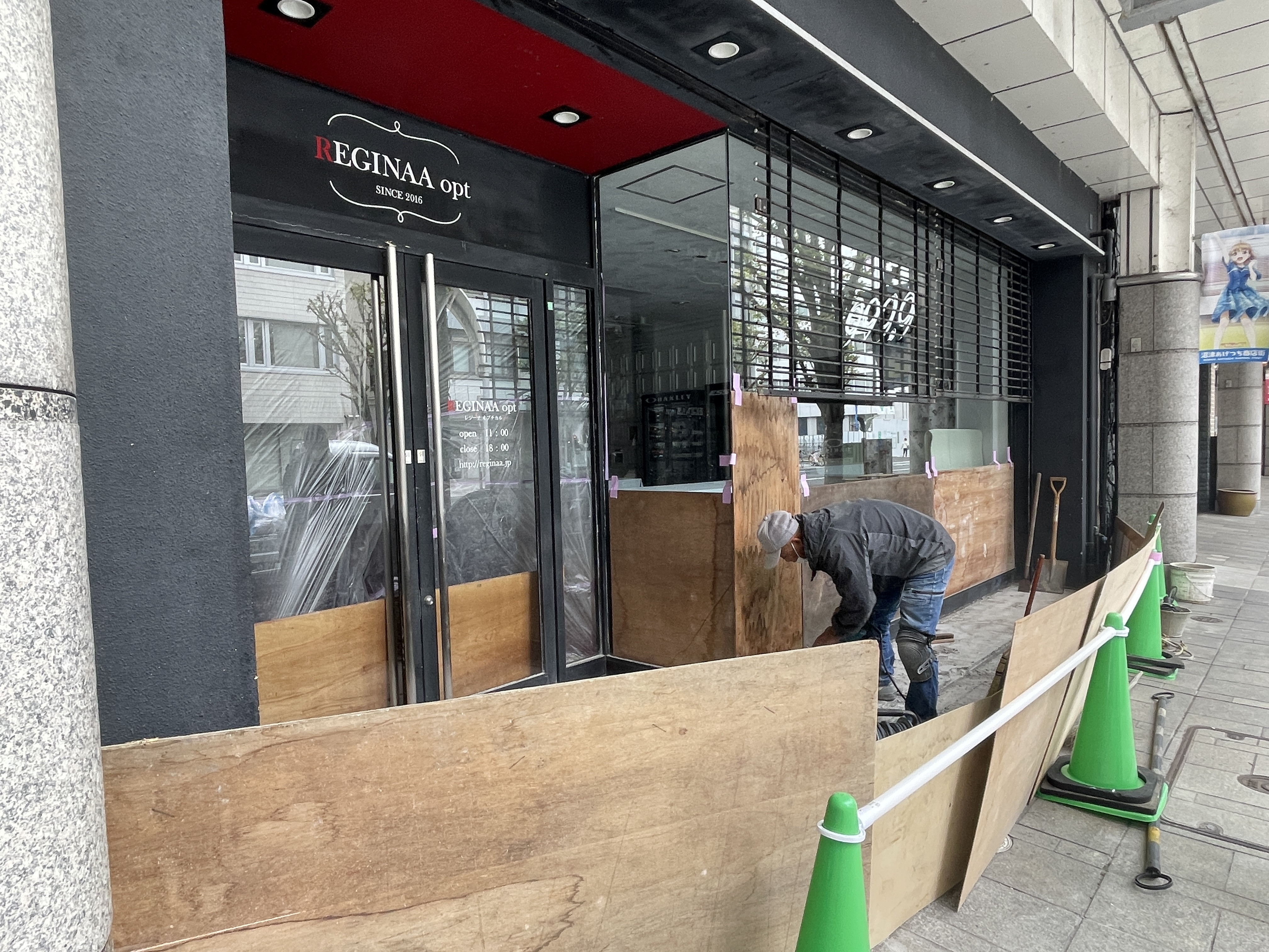 本日より、沼津上土町のレジーナオプチカル様、ファサード工事が始まりました。